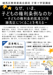 【9/21】なぜ、いま、子どもの権利条例なのか —子どもの権利条約批准30年 練馬区につくることを考える—