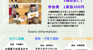 日程 令和4年8月25日(木) 時間 10:00~11:00 会場 参加者のご自宅 対象 練馬区にお住まいの0~3歳まで